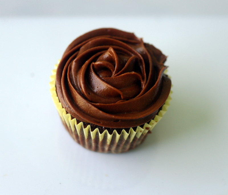 But this frosting pipes out beautifully. Probably one of the best chocolate frostings I've ever made! I made rose swirls with my favourite icing nozzle, Wilton 1M.